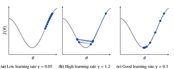- In this case, is viewed as a hyperparameter, called the learning rate or step size, and the optimal value depends on the shape of the cost function.