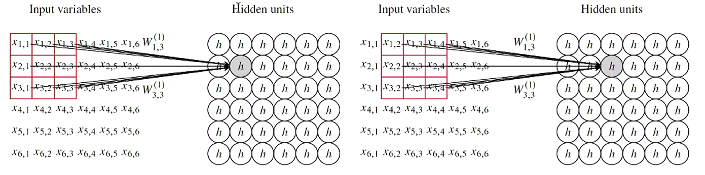 - Uses sparse interactions and parameter sharing