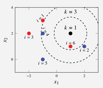 We choose the closest data-points, and take a majority vote (in the case of classification) or average (in the case of regression) to determine the output value
