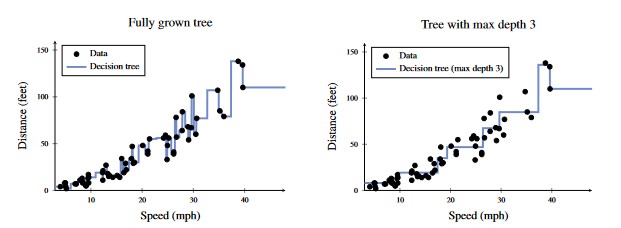 Figure 9 - Effect of varying depth of decision tree. Right Decision tree with unbound depth. We can see that the decision tree over-fits to the data.