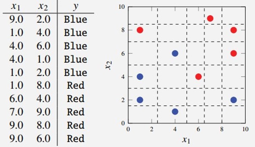 - Conceptually, applying a series of if-then rules to partition the input space.