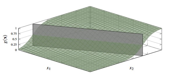 p(y=1 | {\bf{x}}) \text{ is modelled by } g({\bf{x}}) \tag{3.26a}