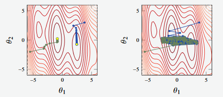 However, in Figure 7, we see attempts to find the global minimum on two non-convex functions