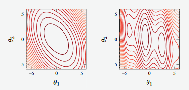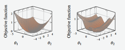 The function shown on the left is a convex function, and it has a unique global minimum (simple function to optimise)