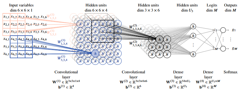 Figure 11 - An example architecture for a convolutional neural network used for the classification of 6x6 grayscale images