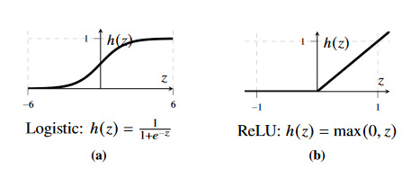 The two most common activation functions are the logistic sigmoid and the ReLU.