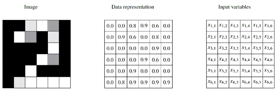 When converting an image into the data representation, we convert the image into its data representation, in which the number represents the intensity of the pixels.