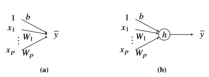 Figure 1 - Artificial Neuron (a) Generalised linear regression model (b) Output described as sum of all terms.