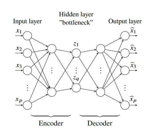 We can see from the structure that the network tries to learn an identity mapping, so that the target output for some input vector is the input itself (the model’s desired output is the input).